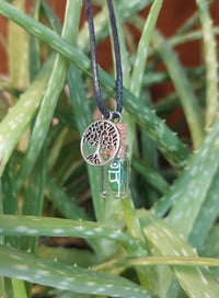 This unique necklace is made using a tiny pumpkin seed with a handpainted chakra symbol sealed in a glass bottle. Presented on black waxed cord complete with a silver charm, it makes a beautiful and unusual piece of jewellery.