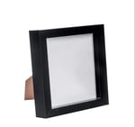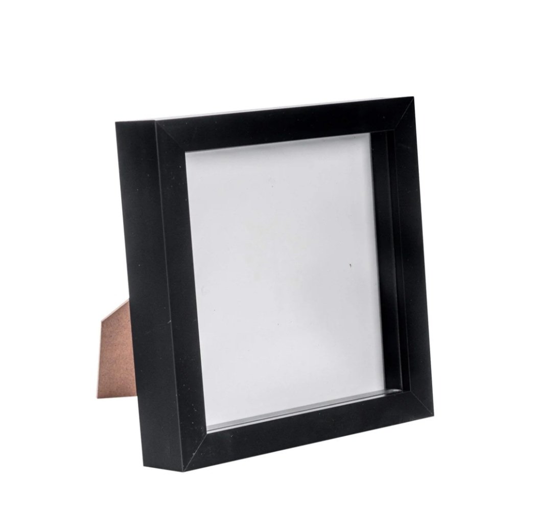 The painting comes mounted and framed in a black 6" x 6" square acrylic box frame, with mount *