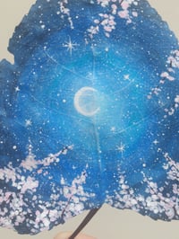 Under the silvery light of the moon, blossom trees gently dance on the breeze. Lovingly