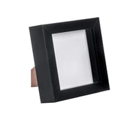The painting comes mounted and framed in a black 4" x 4" square acrylic box frame.